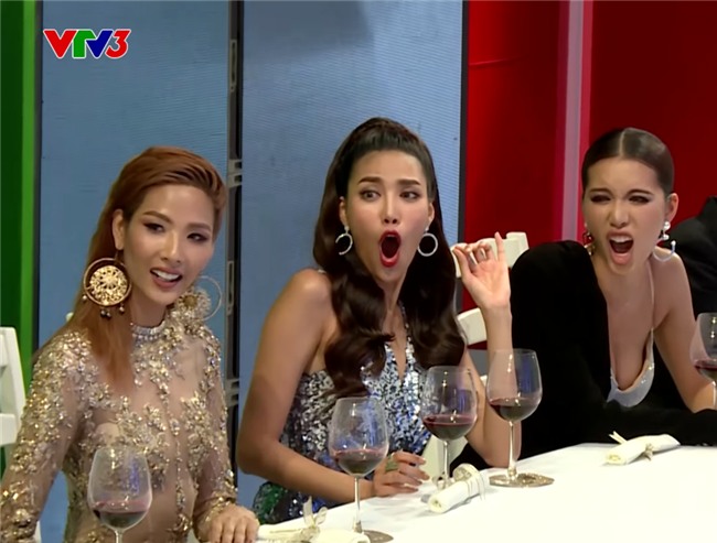 Chứng kiến cảnh Quỳnh Như "càn quét" bàn tiệc và làm đổ ly rượu, Lan Khuê đã thét lên một tiếng đầy kinh ngạc. Tuy nhiên, hành động của Hoa khôi Áo dài 2014 lại gợi cho nhiều khán giả nhớ tới biểu cảm tương tự của đàn chị Hồ Ngọc Hà tại The Face mùa đầu.