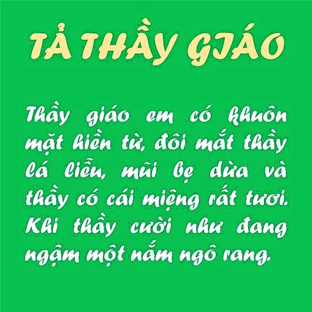 Vẻ đẹp của thầy giáo được miêu tả thật... khó hình dung.