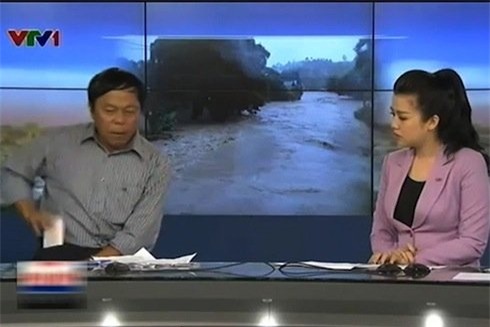 Khi đang trò chuyện về chủ đề “Những ảnh hưởng của cơn bão số 2 tại tỉnh Lạng Sơn”, chiếc điện thoại của PV này bất ngờ đổ chuông. Nhưng hành động phản ứng của PV Sỹ Khỏe còn khiến mọi người sửng sốt hơn khi anh nhanh chóng lấy chiếc điện thoại từ trong túi quần và ném thẳng ra ngoài khung hình. Hành động của Sỹ Khoẻ khiến nhiều người khá buồn cười nhưng điều khen anh nhanh trí để không ảnh hưởng tới công việc đang dẫn.