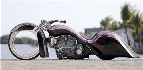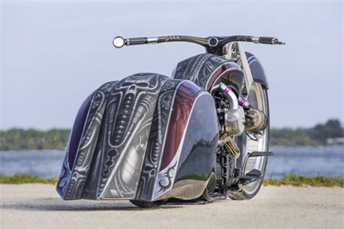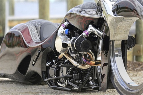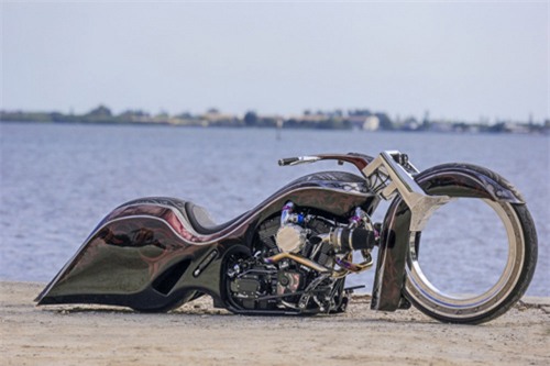 Hiện trào lưu độ bánh “Hubless” là một sản phẩm của xưởng độ Ballistic Cycles, ngoài chiếc bánh xe trước độ Hubless, phần khối động cơ Harley Road King của xe còn được trang bị bộ Turbo-Charged mạnh mẽ, mang đến công suất lớn hơn so với nguyên bản.