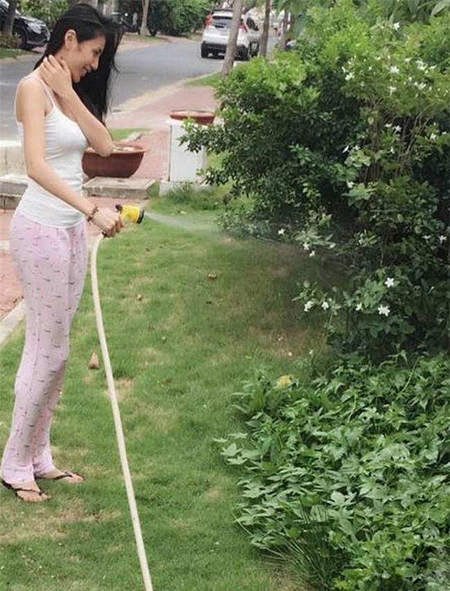 Có thể nhận thấy, Thủy Tiên ở nhà ăn mặc rất đơn giản, như bao người phụ nữ bình thường khác.