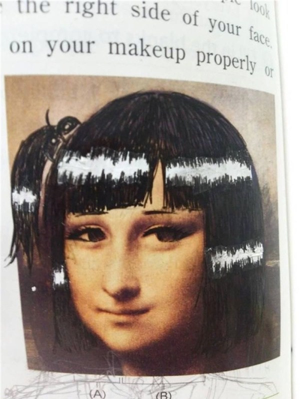 Chỉ sau vài nhát bút, nàng Mona Lisa với nụ cười bí ẩn đã hóa thành một em nữ sinh trung học bánh bèo.