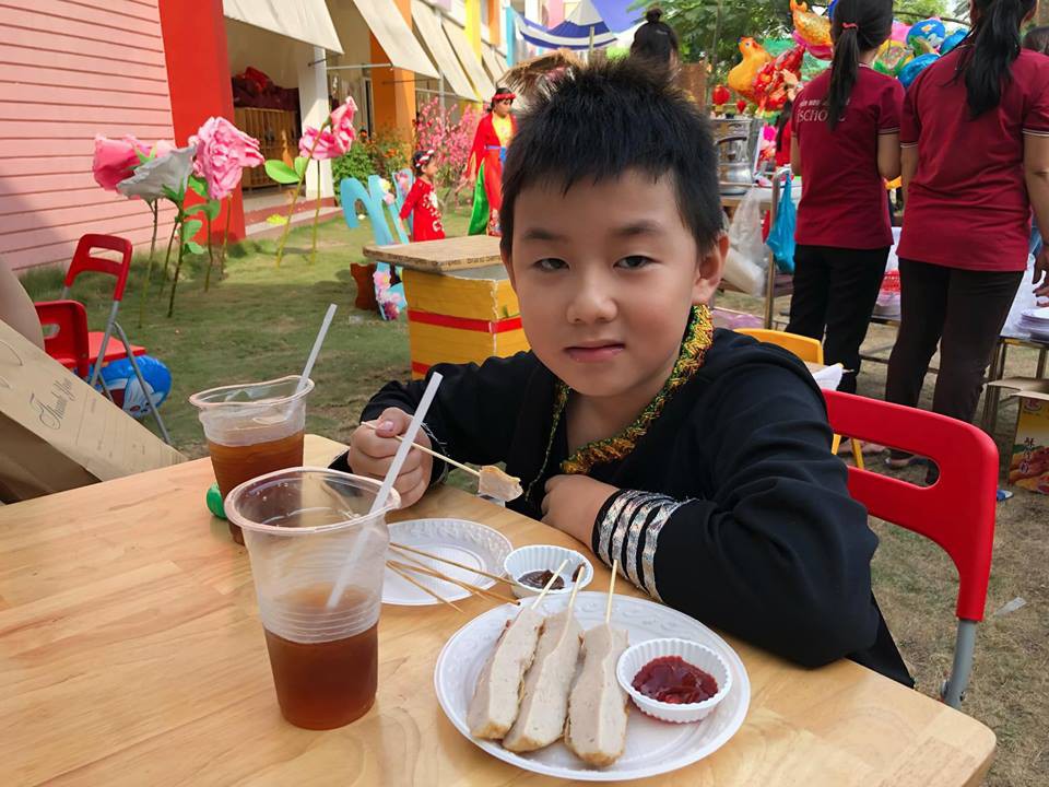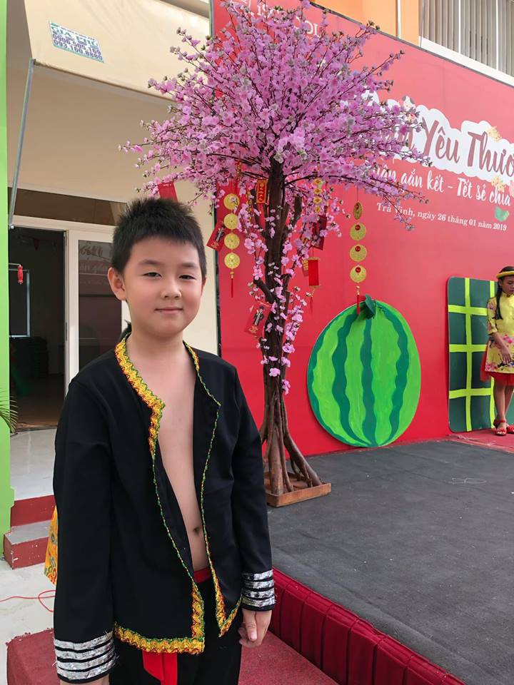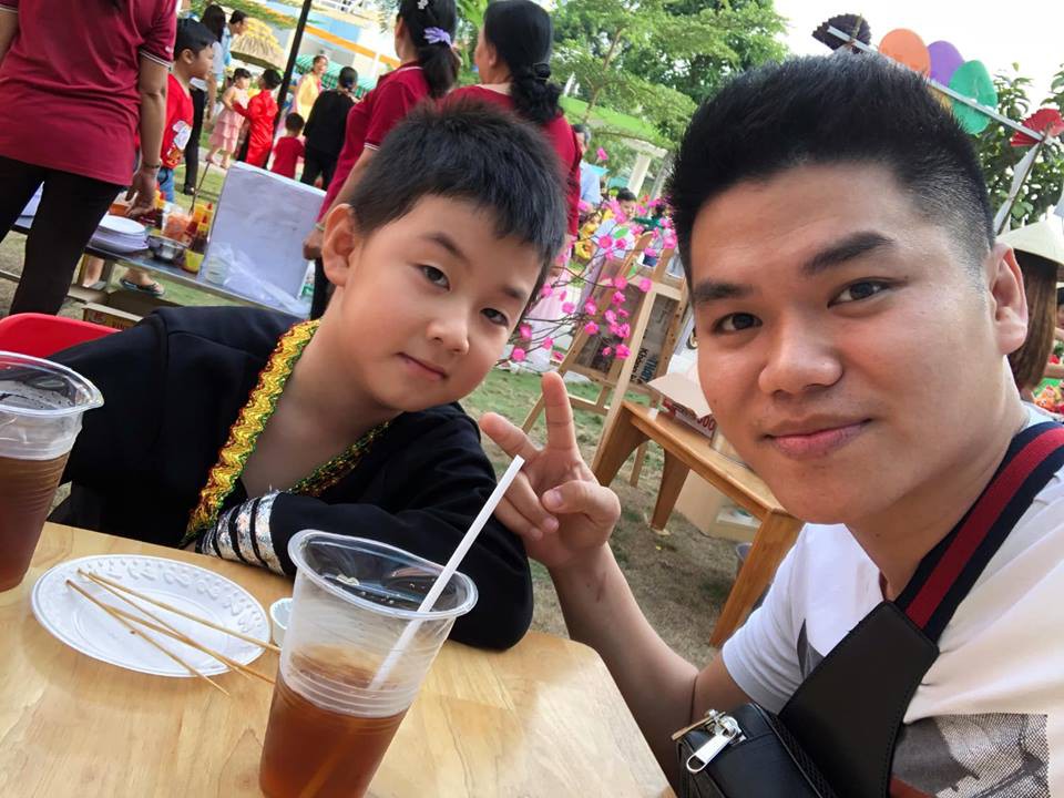 Đính kèm đó, cô còn chia sẻ rất nhiều hình ảnh hai ba con Trung Kiên – bé Cà Pháo hào hứng tham dự Hội Xuân ở trường.