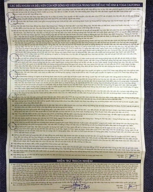 California đưa ra ký kết với chị không hề có điều khoản nào hoàn tiền