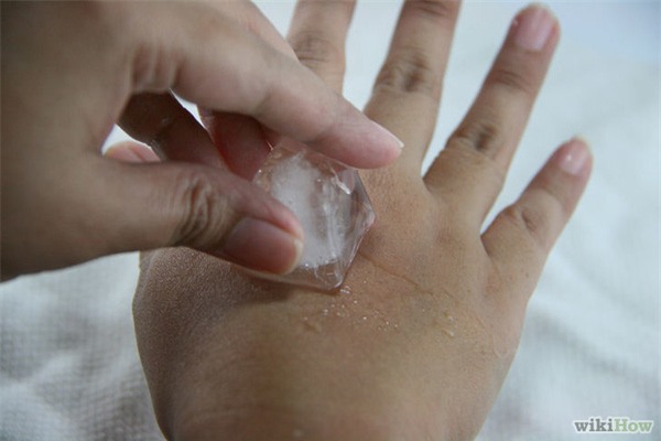 Cách thực hiện rất đơn giản, bạn chỉ cần dùng 1 viên đá lạnh, tốt hơn là bọc nó trong chiếc khăn mỏng, rồi dùng để chà xát ở vùng trên mu bàn tay, giữa ngón cái và ngón trỏ trong khoảng 5 phút.