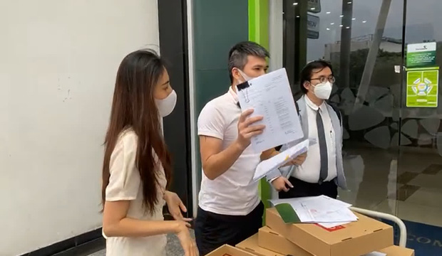 Chiều 17/9, Thuỷ Tiên và Công Vinh đã có mặt tại ngân hàng tiến hành thủ tục và nhận sao kê 18.000 trang số tiền kêu gọi ủng hộ miền Trung