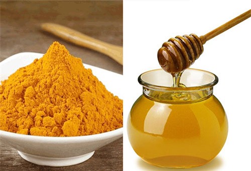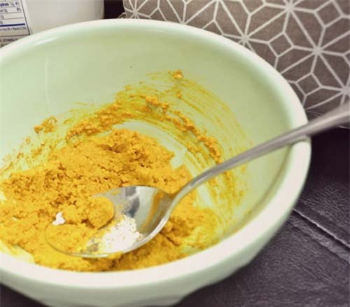 - Cho tinh bột nghệ và mật ong vào bát trộn đều đến khi thu được hỗn hợp đồng nhất dạng sền sệt.