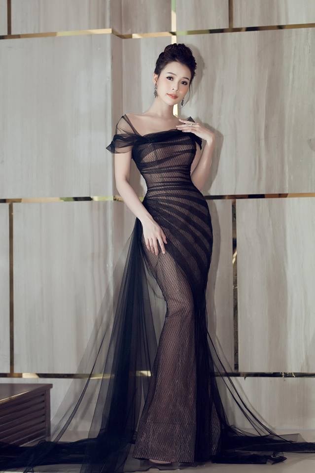 Thân hình đồng hồ cát của cô được khai thác triệt để trong chiếc váy dạ hội bó sát.
