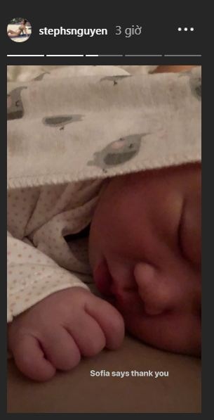 Không chỉ khoe những hình ảnh của con gái mà Stephanie Nguyễn còn khoe đồ ăn mà em dâu là Tăng Thanh Hà mang vào bệnh viện cho cô. Stephanie Nguyễn cho biết đồ ăn của Tăng Thanh Hà rất ngon và giúp cô bồi bổ sức khỏe.