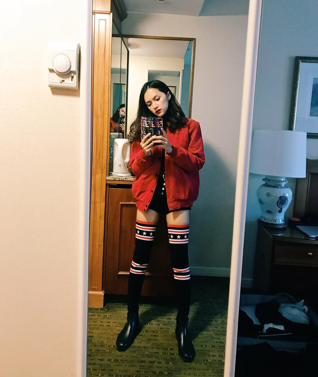 Thậm chí có người còn tưởng Hương Giang đang diện đồ hiệu Gucci, nhưng hóa ra chính cô nàng bật mí đây chỉ là mẫu áo khoác bình dân có giá khỏng 400.000 VNĐ cô mua ở Hà Nội mà thôi.