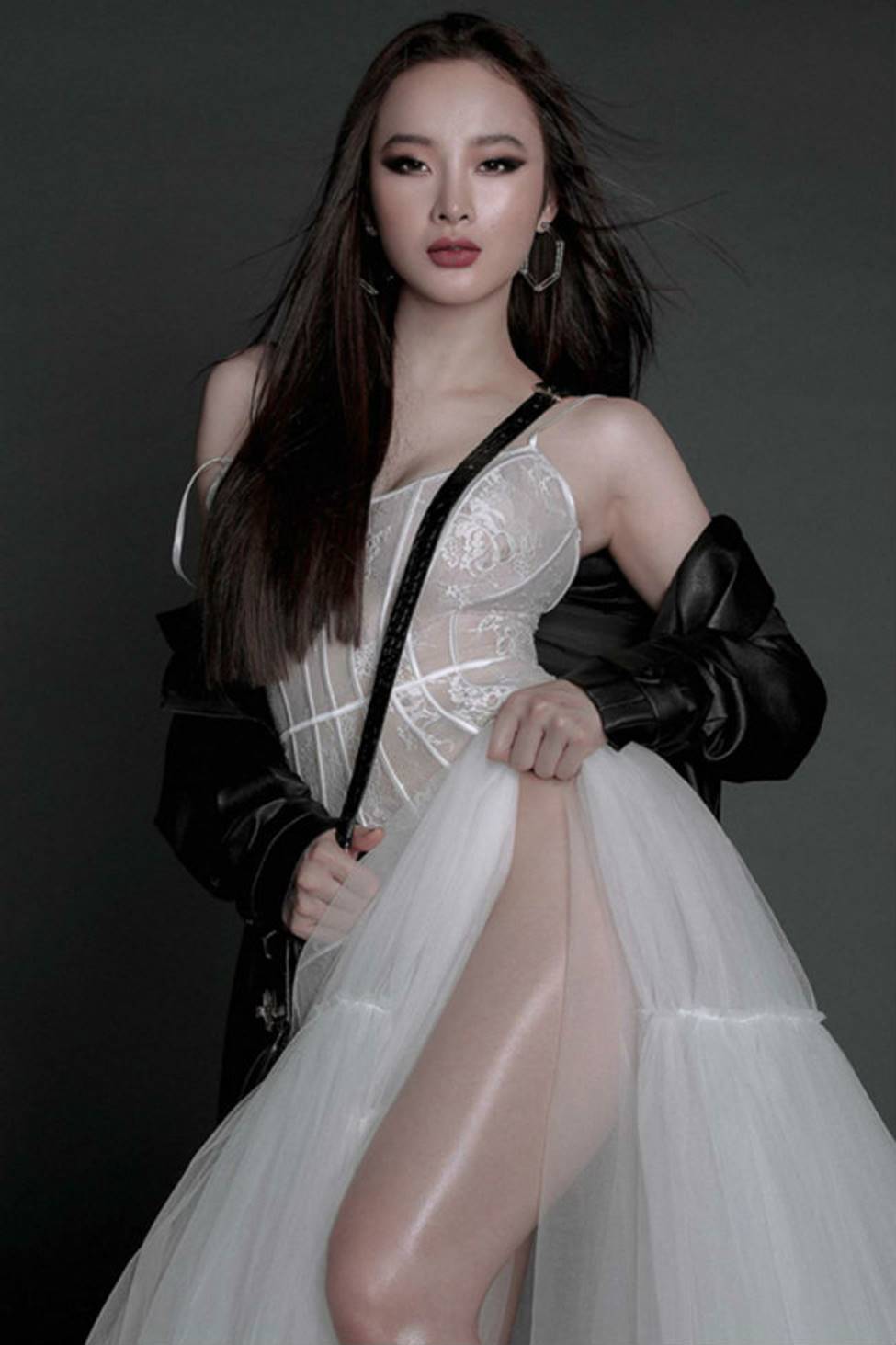 Sở hữu hình thể đẹp, thon thả và vòng một khá nóng bỏng, cô tự tin khoe nhan sắc trong những bộ trang phục táo bạo như thế này.