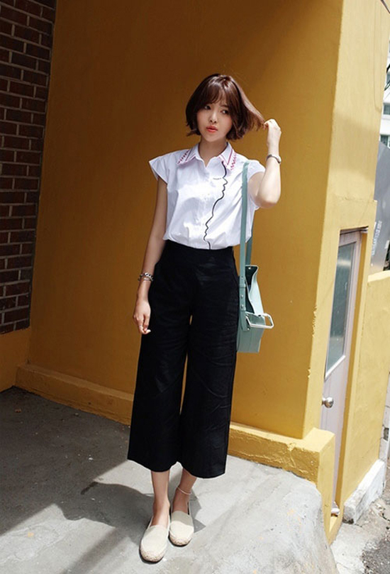 Hãy tận dụng sự điệu đà, kiểu cách của những chiếc áo sơ mi tay ống loe để khiến mình trông hấp dẫn hơn. Thời trang của cô nàng đùi ếch luôn cần đối lập giữa vẻ gọn gàng phần dưới và sự duyên dáng phần trên.