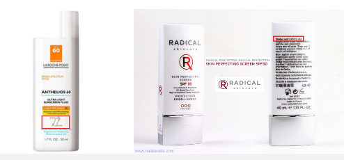 Kem chống nắng thường có biểu tượng hay dòng hướng dẫn: "Shake well before use" (lắc kỹ trước khi dùng) được in trên bao bì sản phẩm.