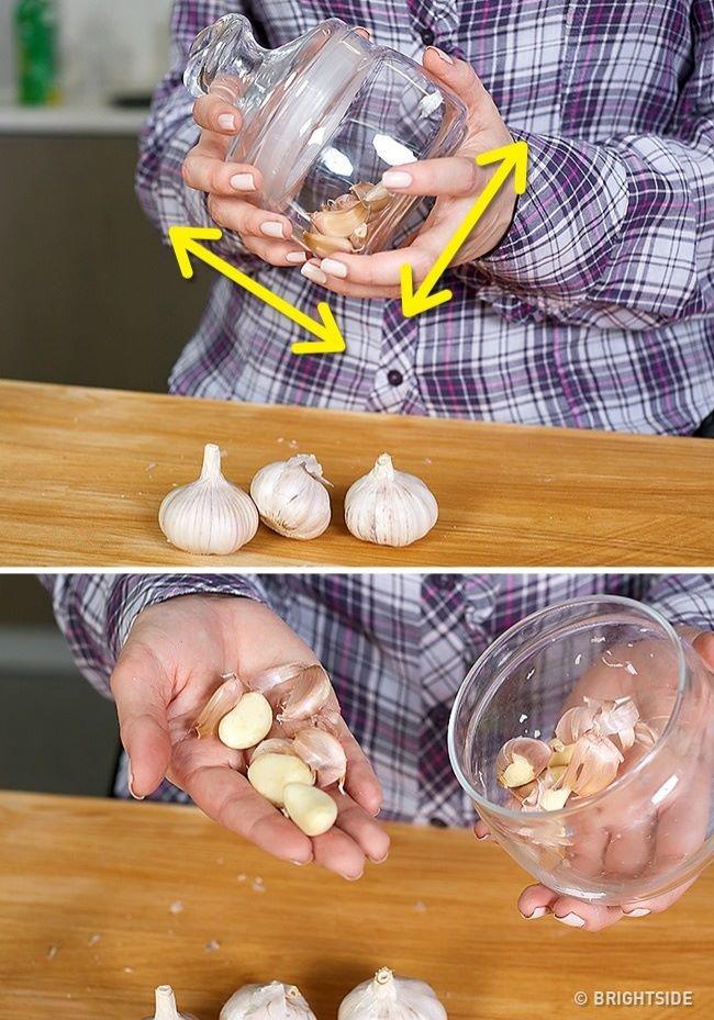 9.Muốn bóc vỏ tỏi nhanh, bỏ tỏi vào chiếc bình.