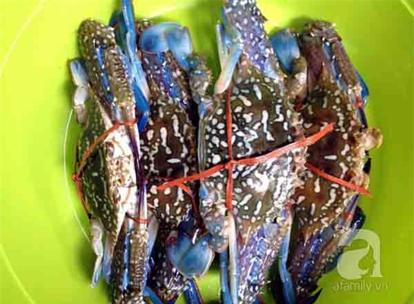 buộc cua bằng dây chuối, dây vải to như ngón tay cái trong khi thực tế