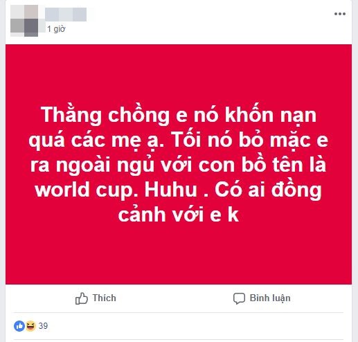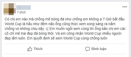 Chuyện bị bỏ rơi những ngày diễn ra World Cup là phổ biến nhất. Vì vậy nên không ít chị em tìm đến các diễn đàn dành cho phụ nữ và mẹ bỉm sữa để than thở và tìm người đồng cảnh ngộ.