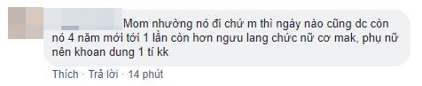 Và nhận đươc lời khuyên "nhường chồng" từ hội chị em: Mẹ nhường chồng đi chứ mình ngày nào cũng được còn World Cup 4 năm mới tới một lần. Còn hơn Ngưu Lang Chức Nữ cơ mà. Phụ nữ nên khoan dung 1 tý. (Ảnh chụp màn hình)