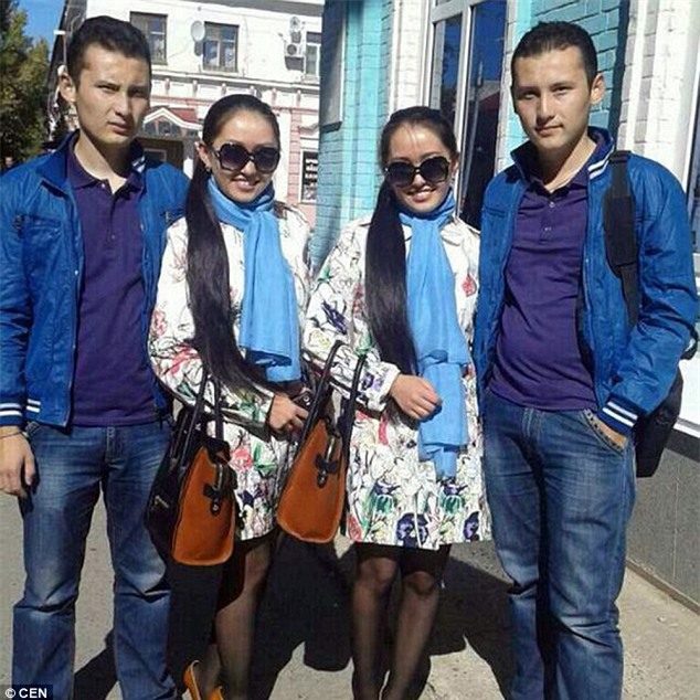 Một năm trước, hai chị em song sinh Asyl và Aiym Binazarova cùng lấy chồng vào một ngày. Điều đặc biệt hơn là họ cùng lấy một cặp anh em song sinh khác là Zholdasbek và Torebek Tolepbergenuly trong cùng một đám cưới.