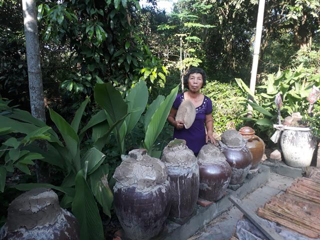 Các loại mắm tôm, tép, tương cà do bà Ngọc chế biến.