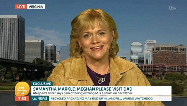 Vào ngày 23/7, Samantha Markle đã xuất hiện trên chương trình Good Morning Britain để nói về mối quan hệ giữa cô với Nữ công tước xứ Sussex và giải đáp nghi vấn có phải cô đã kiếm được khá nhiều tiền từ em gái hoàng gia của mình hay không.