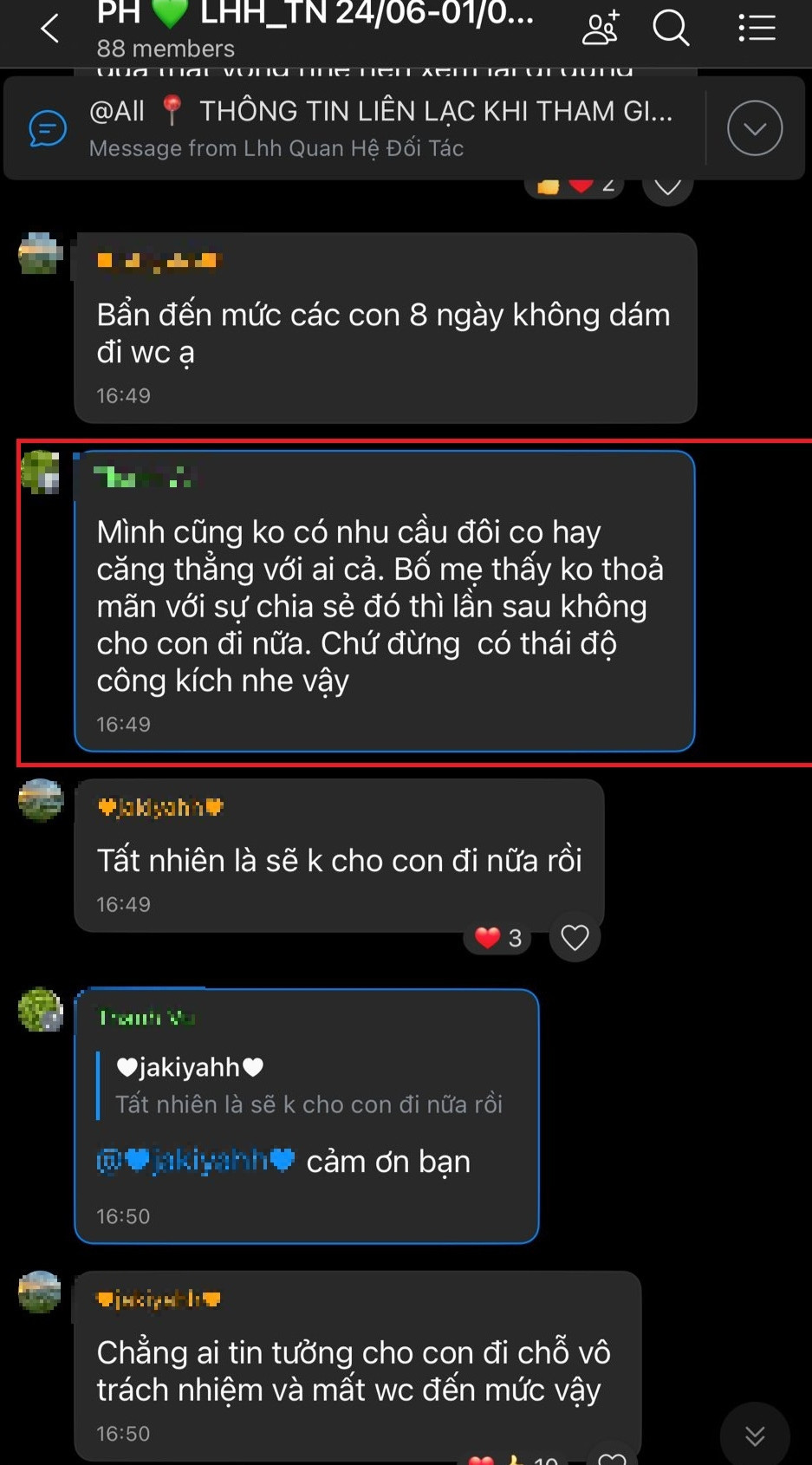 Người này còn nhắn trong nhóm Zalo chung: "Bố mẹ thấy không thoải mái thì lần sau không cho con đi nữa".