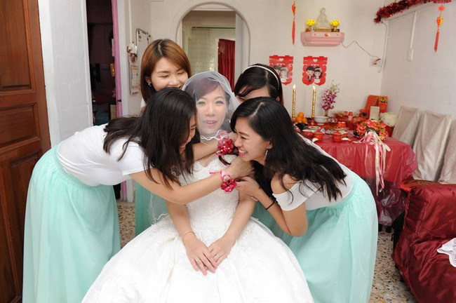 … hay đánh tiếng cho cô dâu biết lúc nào nên cười.