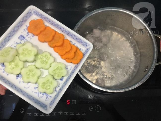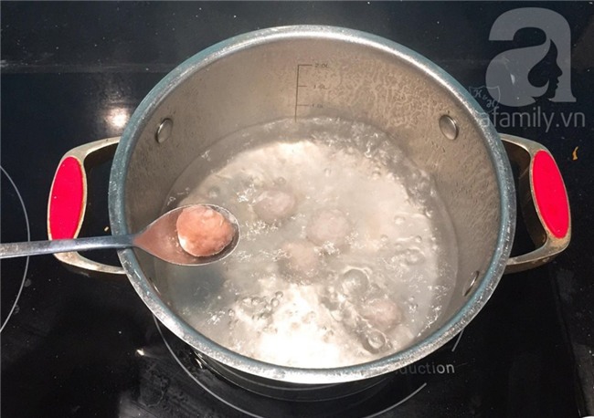 Đun sôi nước, vo thịt thành từng viên nhỏ rồi thả vào nồi canh.