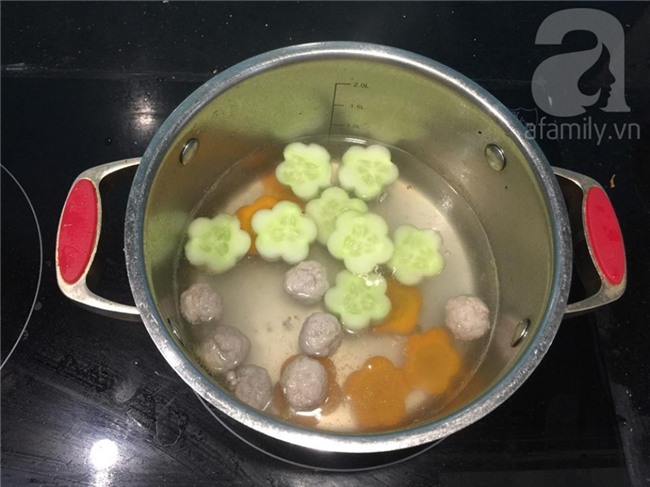 Cho tiếp cà rốt vào nấu. Khi cà rốt mềm, cho tiếp dưa leo vào nấu chín.