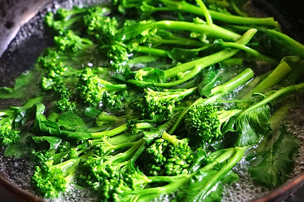 Đun sôi lượng nước thích hợp trong nồi, thêm 3 giọt dầu ăn vào sau đó cho rau súp lơ vào luộc khoảng 1 phút. Tiếp đó vớt rau súp lơ ra xả qua với nước lạnh rồi để ráo nước.