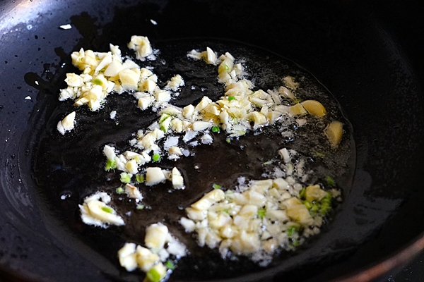 Đun nóng chút dầu ăn trong chảo, đổ tỏi băm vào xào thơm.