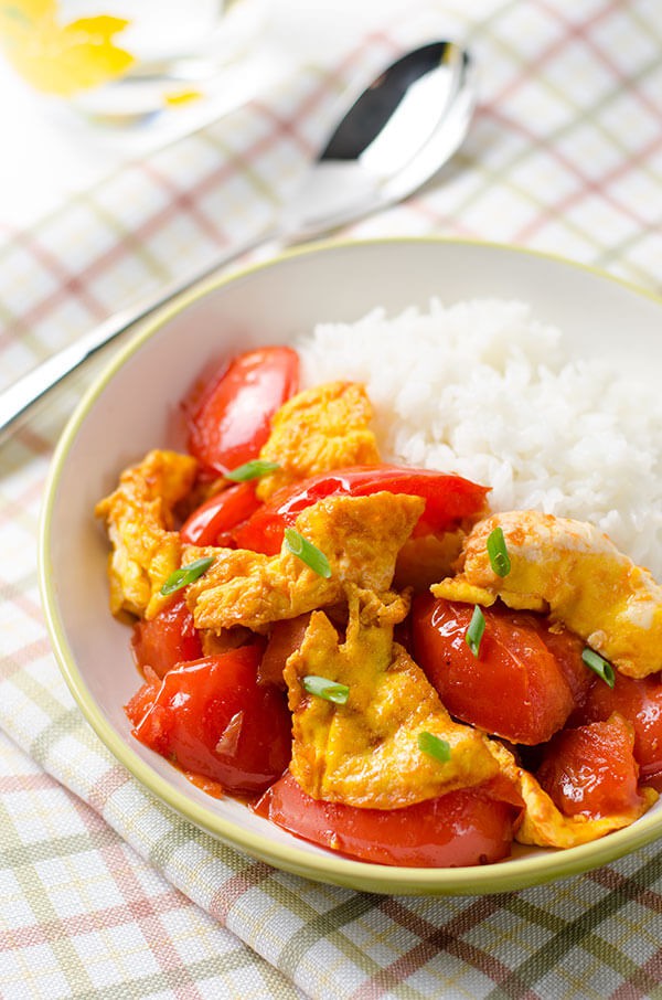 Xúc trứng chiên ra đĩa, rắc hành lá cắt nhỏ lên trên dùng với cơm trắng nóng hổi là ngon hết ý. Món trứng chiên cà chua không còn xa lạ với nhiều người, tuy nhiên thông thường mọi người hay xào cho cà chua nhuyễn ra rồi đổ trứng vào đảo cùng, như vậy khi ăn sẽ khó cảm nhận vị ngọt tươi của cà chua. Với chút biến tấu này hy vọng sẽ đem lại một gợi ý mới mẻ cho món ăn quen thuộc của các bạn.