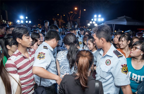 Kết thúc sự kiện, Chi Pu được vây kín trong vòng tay fan. Cô được vệ sĩ hộ tống ra xe để đi về sau một ngày làm việc tích cực.