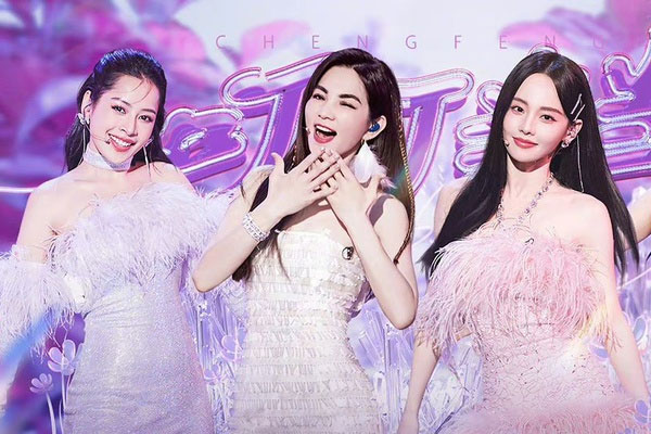Chi Pu cùng ba chị em trong đội gồm Ella, Ngô Thiến, Trương Gia Nghê trình diễn "See tình" tại "Đạp gió 2023" (Ảnh: Sina).