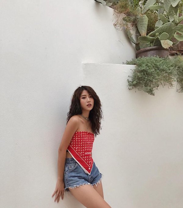 Người đẹp biến tấu chiếc khăn choàng quen thuộc thành mẫu áo cổ yếm để lộ chân ngực và vòng 2 thon gọn. Hình ảnh nhanh chóng nhận được nhiều lời khen ngợi về khả năng biến hoá tài tình cũng như về vóc dáng của Chi Pu.