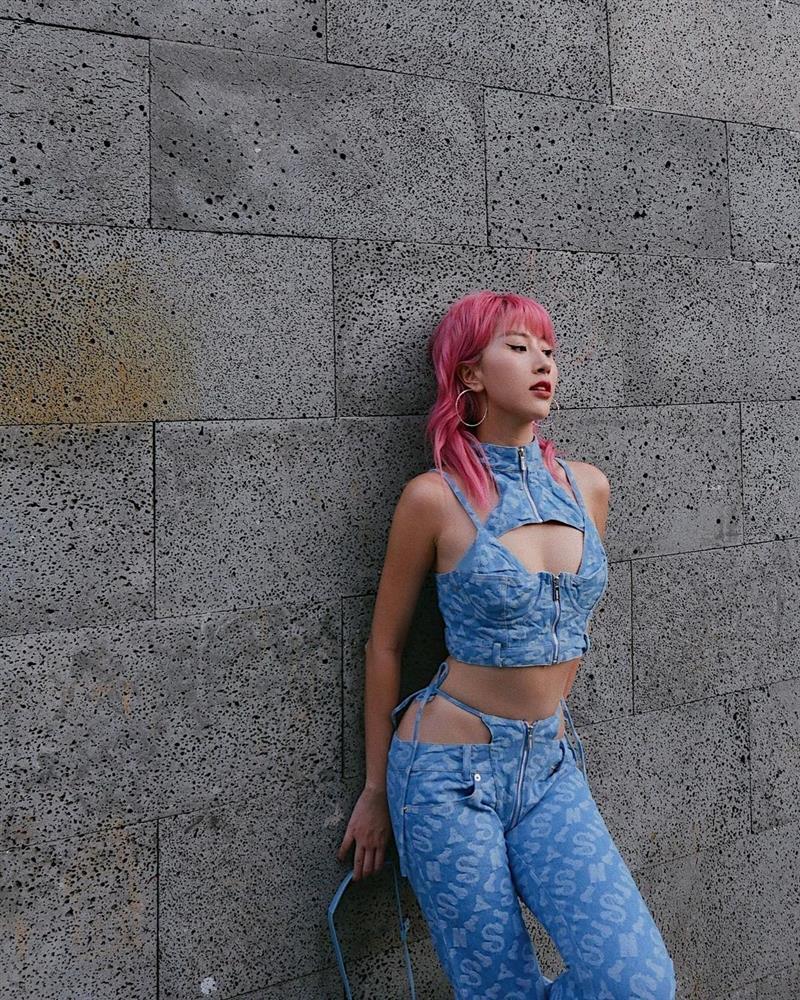 Full set đồ màu xanh vừa hôm trước được Quỳnh Anh Shyn diện thì mấy hôm sau cũng thấy Chi Pu chụp ảnh với bộ y hệt.