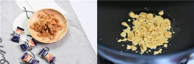 Kẹo dừa thái nhỏ cho vào nồi, thêm dầu ăn vào đun ở lửa nhỏ cho kẹo tan.