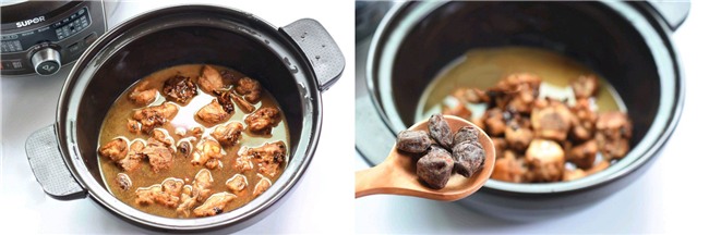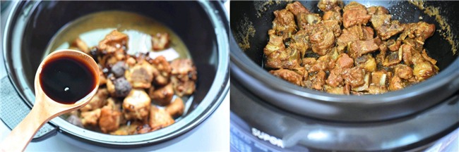 Thêm gừng, nước tương đặc, nước tương nhạt, rượu nấu ăn. Bạn hầm nồi sườn cho đến khi cạn nước và sườn chín mềm là được.