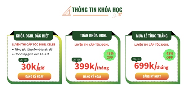 Trong khi đó, với kỳ thi ĐGNL do ĐH Quốc gia TP.HCM tổ chức, một trung tâm tại TP.HCM cung cấp khóa luyện thi cấp tốc có giá 3,5 triệu đồng với nhiều ưu đãi hấp dẫn.