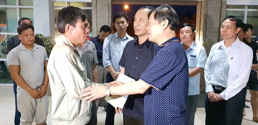 Thứ trưởng Lê Đình Thọ và Phó chủ tịch Khuất Việt Hùng chia sẻ những mất mát với gia đình các nạn nhân và động viên người thân vượt qua nỗi đau, tập trung lo hậu sự cho người xấu số.