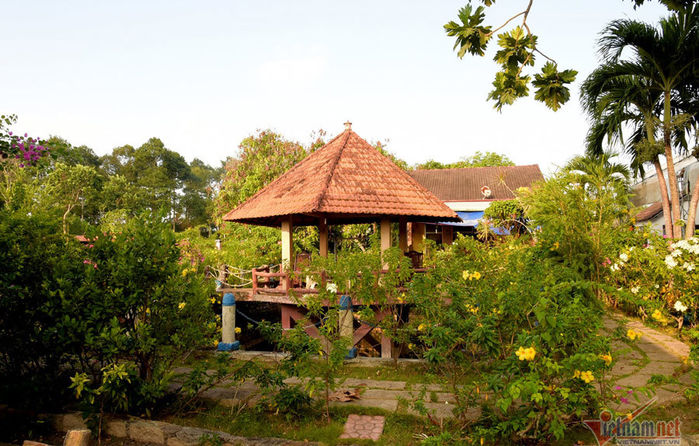 Ở ngoài không gian sân vườn còn có nhà chòi phục vụ nhu cầu giải trí.
