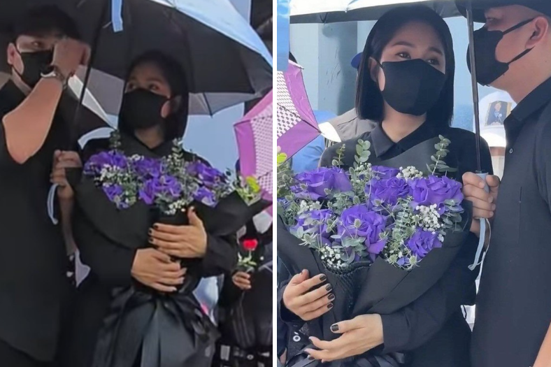 Không phát biểu dài dòng, không đứng ra trước ống kính truyền thông, Lê Phương và Trung Kiên lặng lẽ thực hiện những nghi thức tiễn đưa trong sự riêng tư. Bó hoa tím, ánh mắt buồn và sự hiện diện lặng thầm ấy, như một cách Lê Phương nói lời chào cuối cùng với một người từng là thanh xuân, từng là ký ức đẹp trong đời cô.