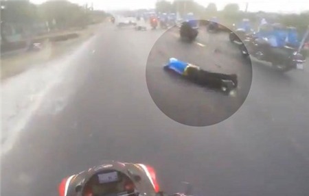 Cú va chạm khiến anh Sáng ngã ra đường và bị một chiếc mô-tô của đoàn xe phía sau đâm thẳng lên người với tốc độ cao.