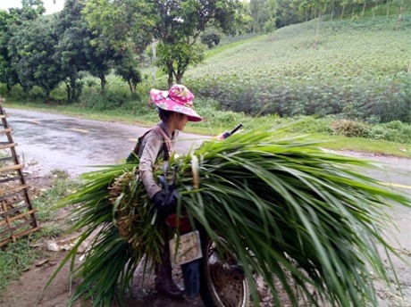 Chị Lò Thị Ngân, bản Ca, xã Chiềng Khoang, huyện Quỳnh Nhai (Sơn La), cho biết: Nhà tôi nuôi 5 con bò, vài con dê, vì đất trồng cỏ ít, không có khu vực chăn thả nên thỉnh thoảng mua một ít cỏ về cho bò, dê ăn, nhất là mùa khô,