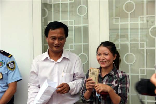 Trong lúc chờ đợi làm thủ tục nhận tiền, chị Hồng cho biết đầu giờ chiều nay đang đi mua ve chai trên đường Lạc Long Quân, Tân Bình thì nhận được điện thoại từ công an mời đến nhận tiền.