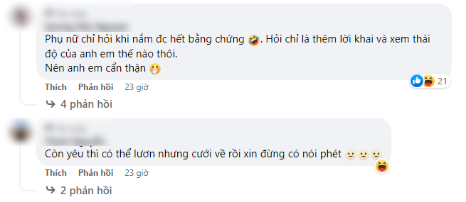 Kết thúc cuộc hội thoại là lời xin xỏ khẩn thiết của người chồng. Thế mới biết, trong đời sống vợ chồng, các bà vợ đa phần đều quan sát rất kĩ và nắm được mọi hành tung cũng như hành động của chồng mình, chỉ là họ có muốn nói ra hay không. Việc nói ra hay không phụ thuộc vào tâm trạng của các chị và mức độ nghiêm trọng của vấn đề. Mà một khi phụ nữ đã nói ra thì họ đã nắm được đằng chuôi, với những bằng chứng rõ ràng khiến các ông chồng muốn cãi cũng không được.