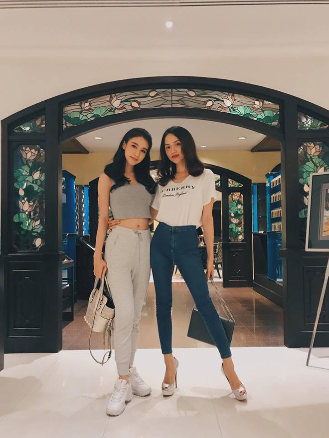 Cao thủ đi giày cao gót chính là HH Hương Giang rồi. Chọn một set đồ năng động, thoải mái với skinny jeans và áo phông nhưng nàng Hậu vẫn xỏ chân trong một đôi cao gót lênh khênh trong khi Á hâu Yoshi chỉ cần giày thể thao thôi là đủ.