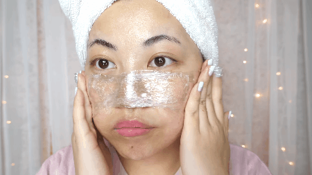 Vào sáng ngày hôm sau, Fei Yang tháo bỏ lớp nilon rồi dùng tăm bông ấn nhẹ vào vùng mũi để đẩy sợi bã nhờn, dầu thứa tích tụ trong lỗ chân lông ra ngoài.