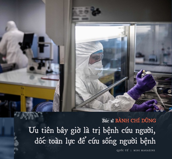 Bác sĩ Bành Chí Dũng: Virus corona mới là một loại virus mới. Chúng tôi chưa nắm chắc được bản chất và con đường lây lan của nó. Nói không sợ hãi là nói dối và nhân viên y tế ít nhiều đều lo lắng. Nhưng bệnh nhân rất cần chúng tôi. Khi bệnh nhân bị suy hô hấp, việc cung cấp oxy thông qua máy trợ thở CPAP thất bại, chúng tôi phải áp dụng đặt nội khí quản.