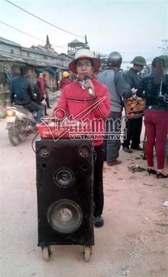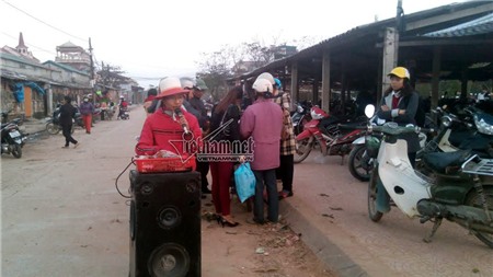 Chiều 15/1, nhóm PV VietNamNet gặp Đào khi em đang đi hát ở chợ Ba Đồn, TX Ba Đồn (Quảng Bình).