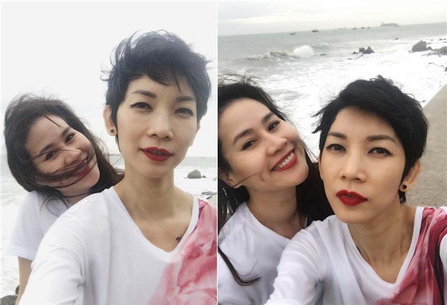 Siêu mẫu Xuân Lan và diễn viên Thân Thúy Hà "tự sướng" bên bãi biển lộng gió